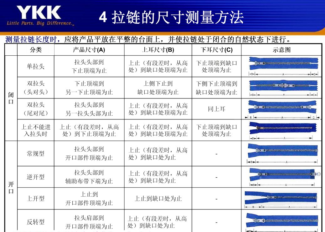 YKK拉鏈的尺寸測量方法